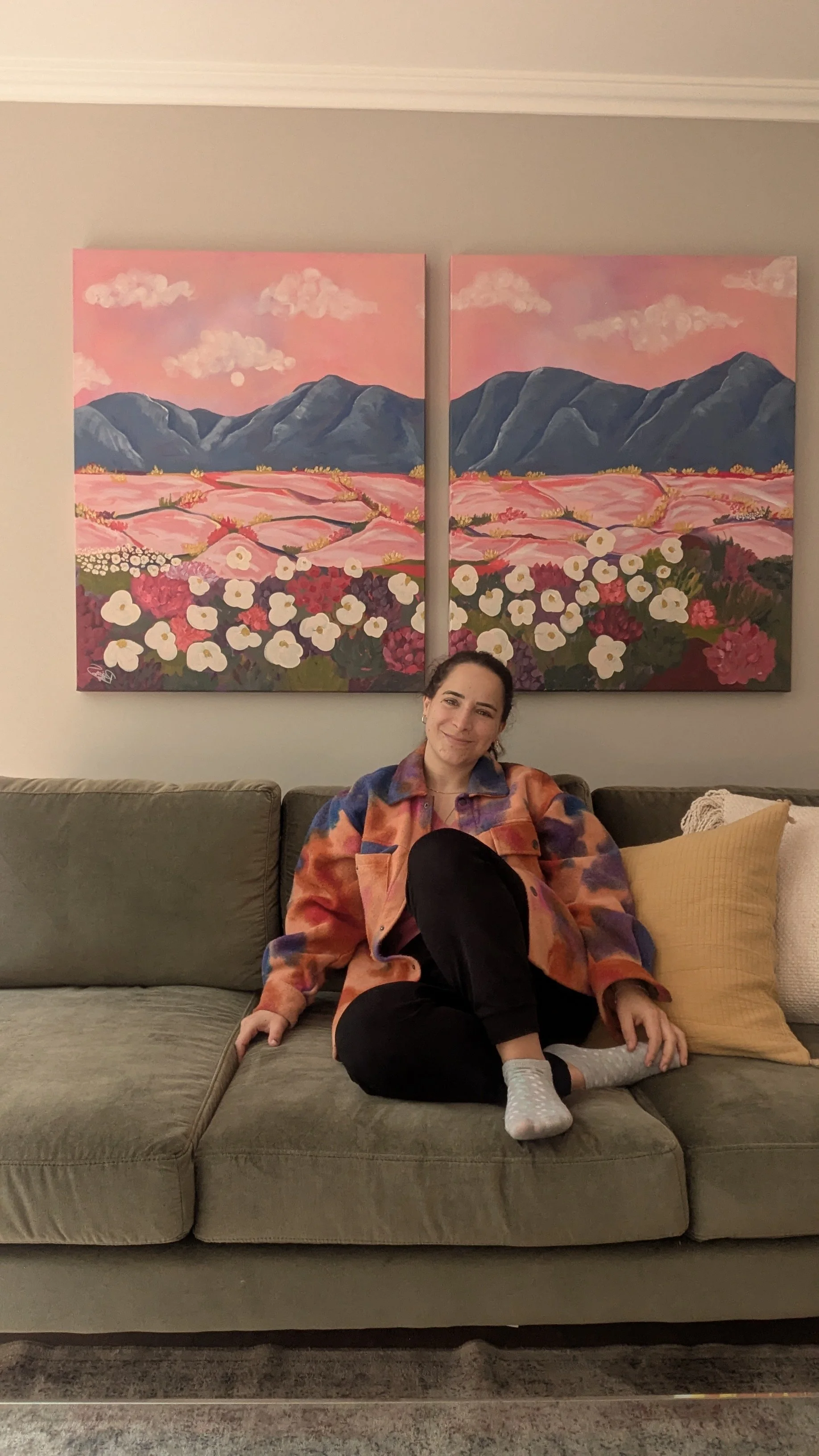 Estudié diseño y llevo años trabajando en interiorismo, lo que me dio una sensibilidad muy fuerte por el espacio y cómo se siente vivirlo. Pero como artista busco algo más: que quien vea mi obra pueda encontrar un pedacito de sí mismo en ella. Me interesa crear piezas que no solo se vean bien, sino que hagan que un lugar se sienta diferente.